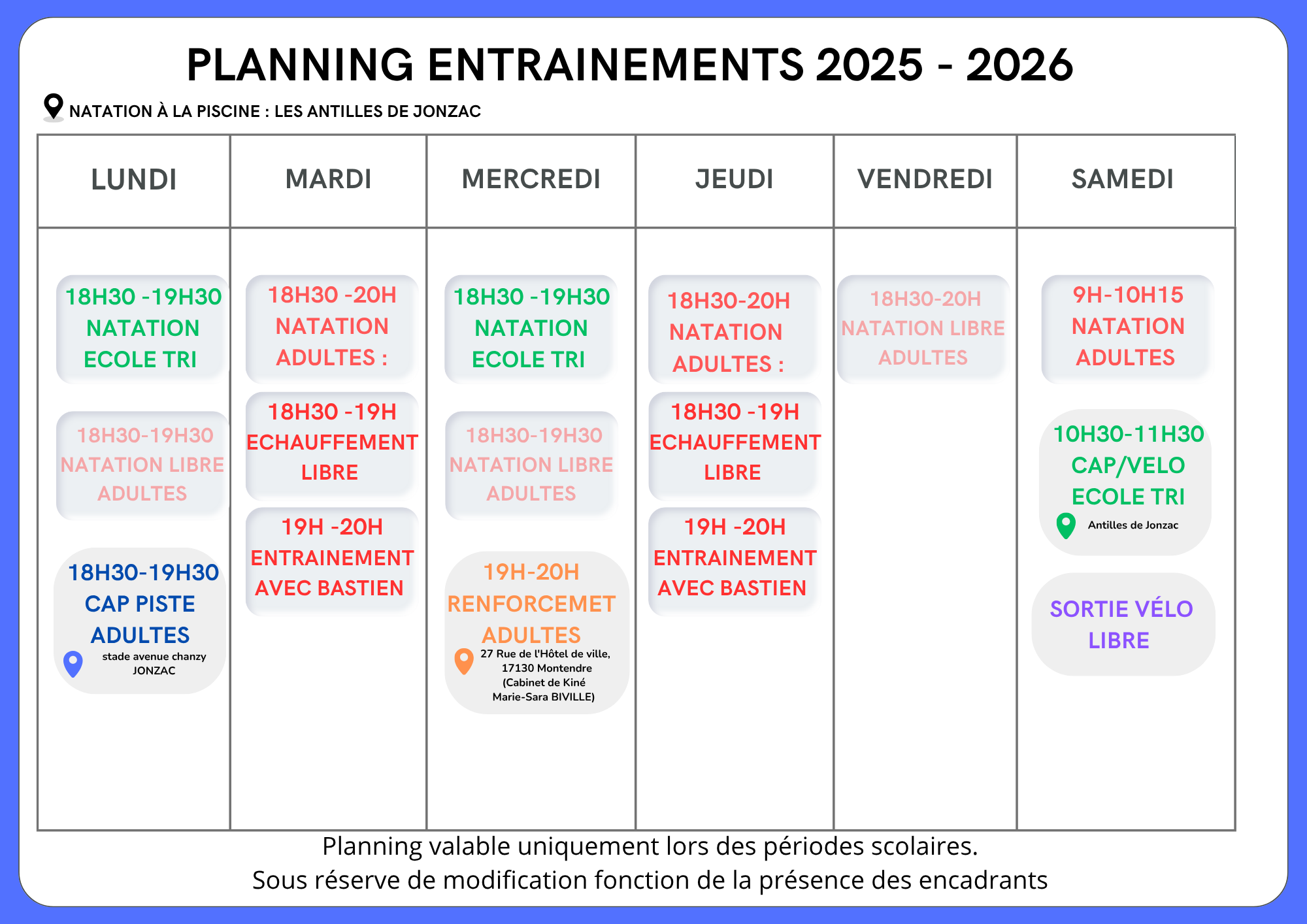 PLANNING / LICENCES ECOLE DE TRIATHLON